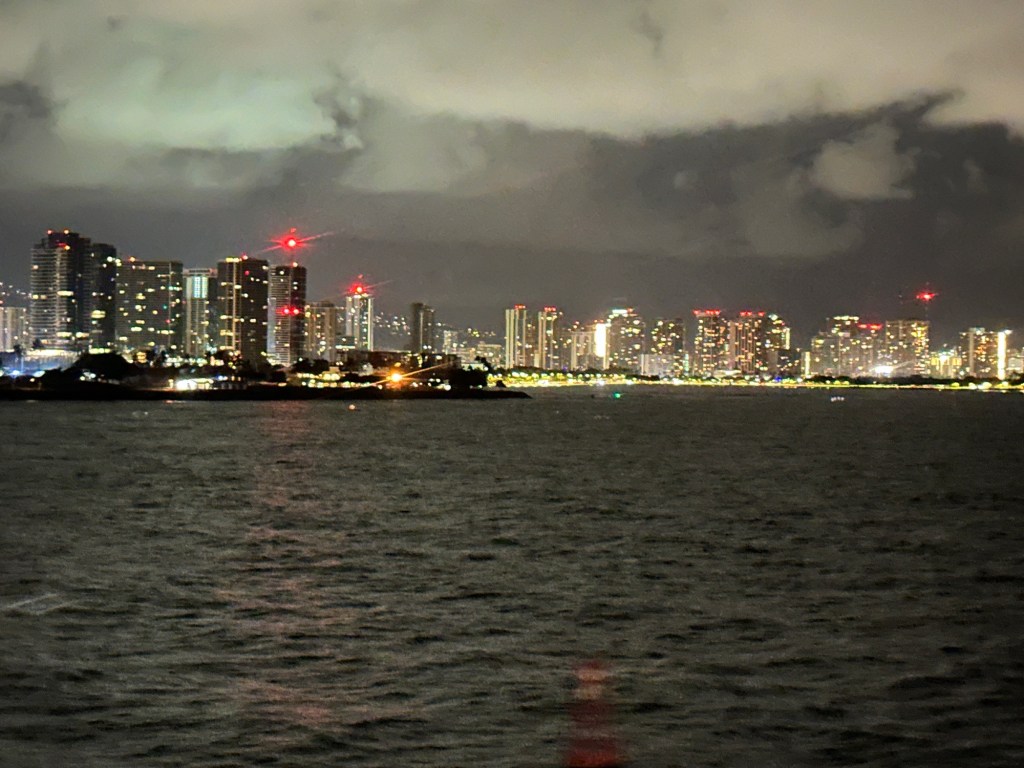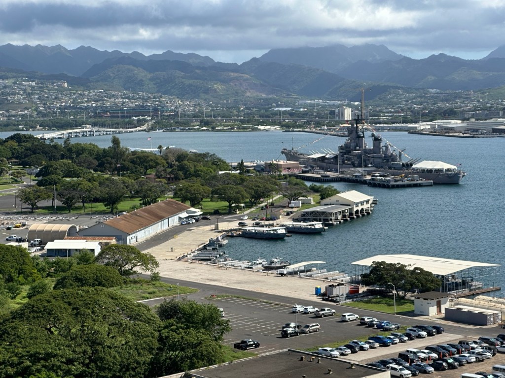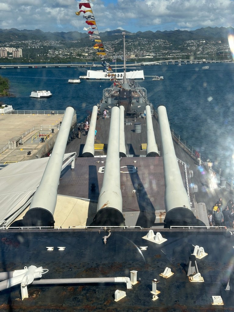 Today was spent remembering December 7, 1941. After arriving in Honolulu at 6:00 am, I took an excursion to the Air Force base on Ford Island which was one of the first areas hit during the Japanese attack. From the air tower, we had a wonderful view of Pearl Harbor which shelters the USS Missouri. The deck of the ship was used as the site where the war with Japan ended with the surrender of the Japanese. Next to the tower, was one of the old hangers used by the Air Corp. We received a guided tour of the old hanger that houses planes from the WWII era.