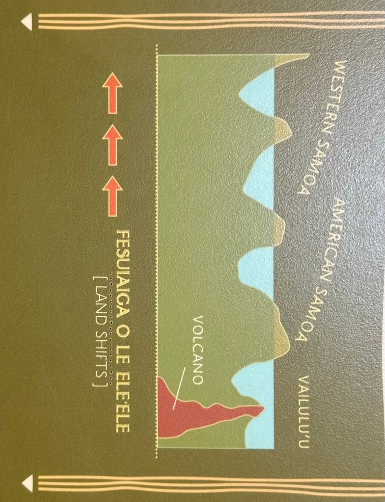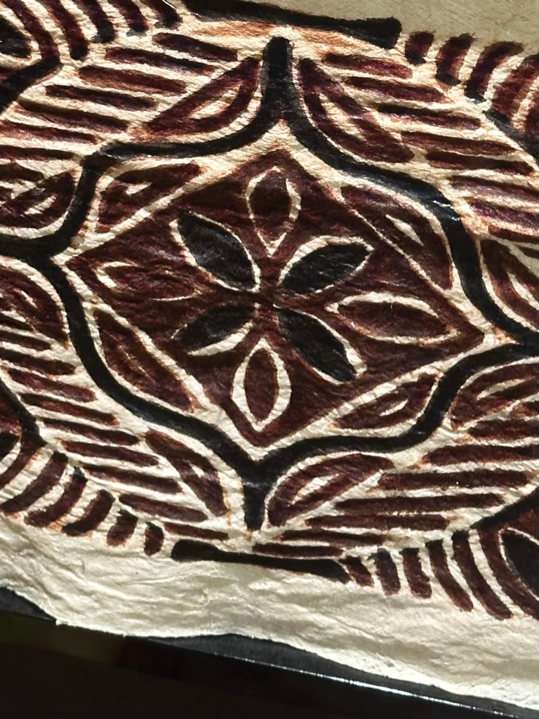 They had lots of displays covering the American Samoan life( there is part of the volcano known as Samoa). This is the oldest known Polynesian culture. One of the photos below helps to show that the volcano is divided by water so that the tips visible above the ocean surface are only a part of the total formation. Finally, a film was shown covering the art of making siapo fabric. That was fascinating.