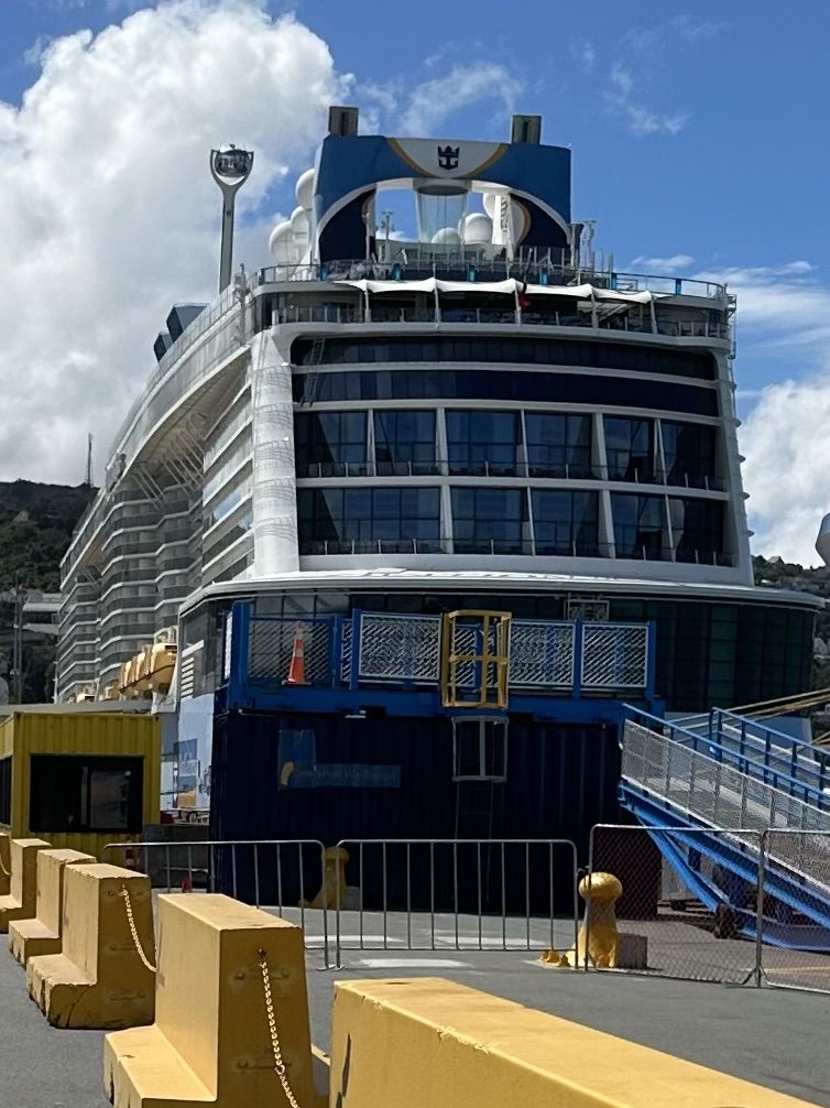We shared a port with a huge Royal Carribean ship. I was told it holds enough room for 6,000 passengers.