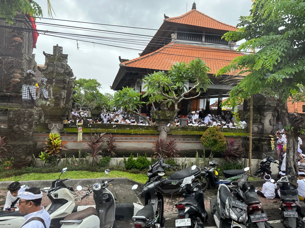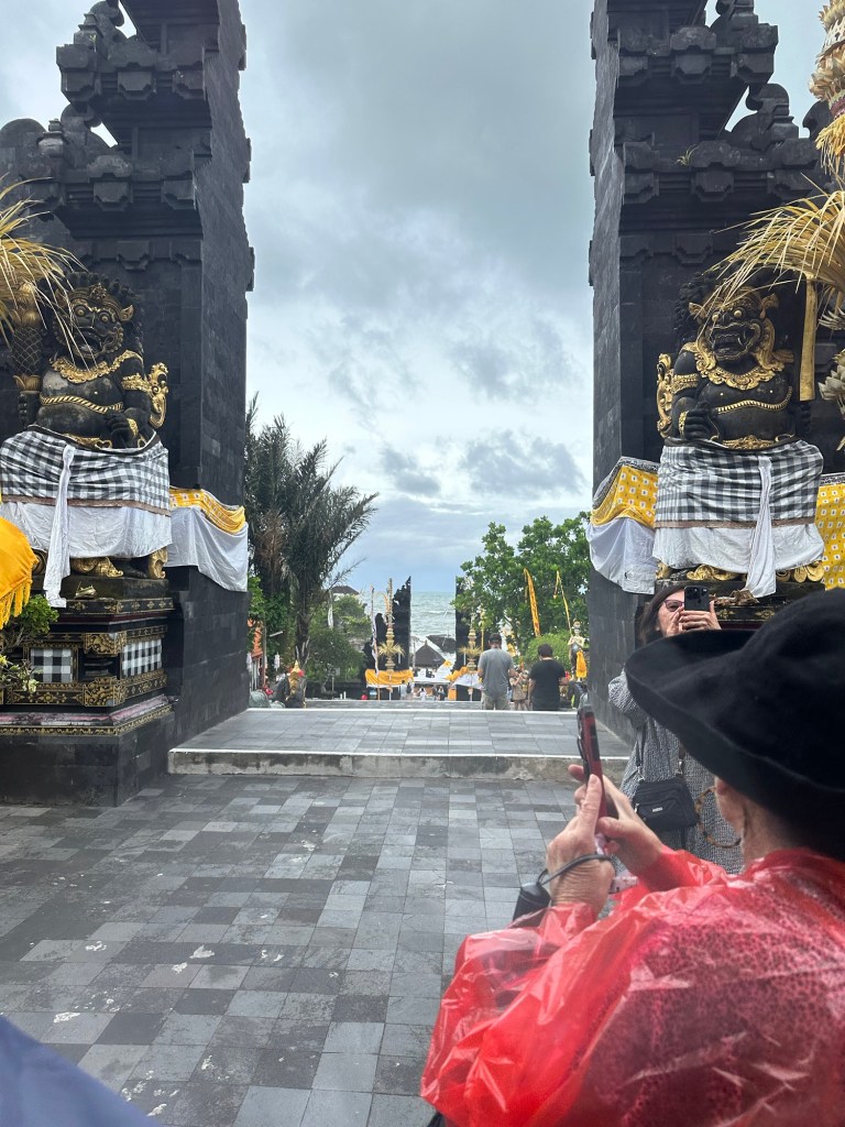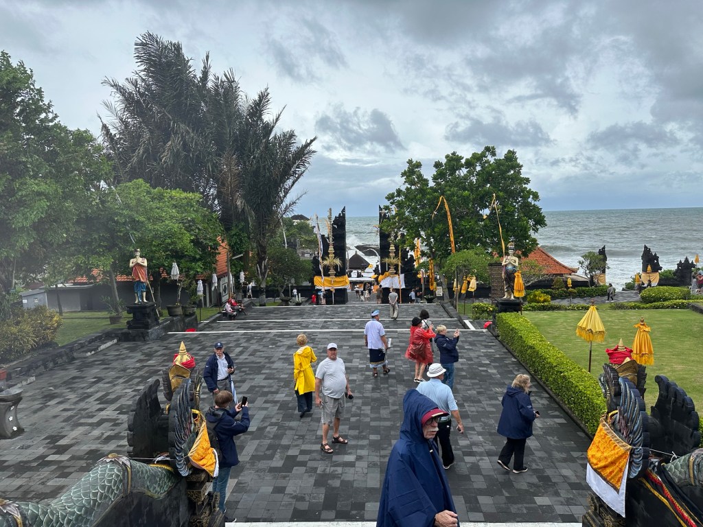We repositioned from the east coast of Bali facing the Bali Sea to the southwest coast facing the Indian Ocean. The capital of Denpasar is located here and full of motorcycles with drivers who seem fearless. We drove through to get to our excursions. The added attraction was the celebration of the Balinese New Year which is based on the Balinese calendar that counts 210 days per year. Families were gathering in the streets to walk to their local temples with offerings.