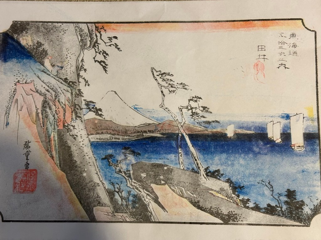 The Tokaido Hiroshige Art Museum was adjacent to the tea house and focused on the work of Utagawa Toyohiro who is better known as Tokaido Hiroshige. He produced his art in the early to mid 1800s and had a series of work representing areas of Japan during the Edo period. His influence extended to Impressionist artist in Europe.