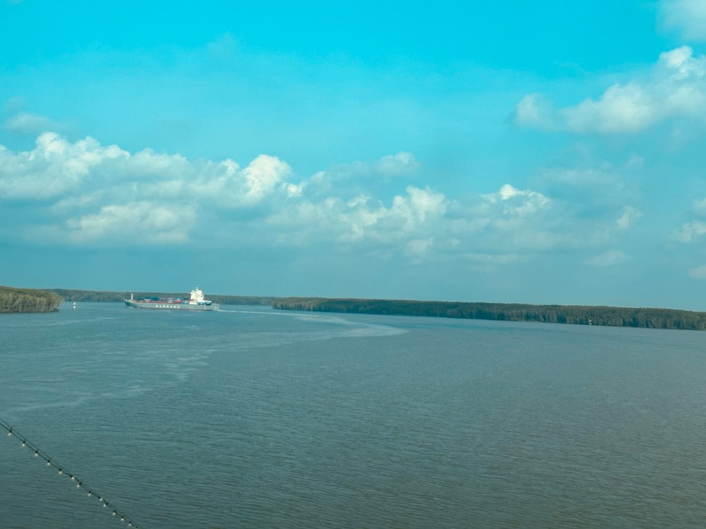 We wound our way down the Long Tau river following another ship to get to Saigon.