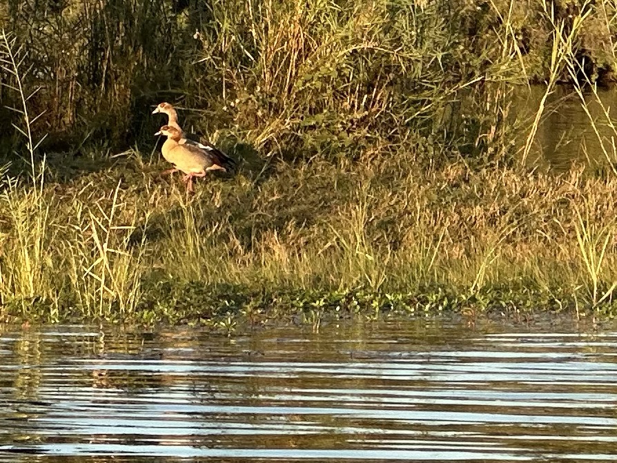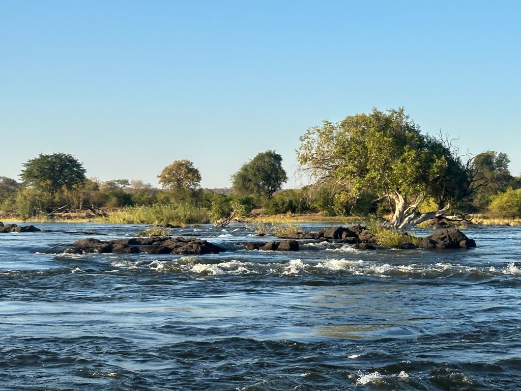 We arrived in Durban at 1:00 pm yesterday and went through customs. As soon as we were done we were taken to the Durban airport to fly to Johannesburg to stay the night. This morning we boarded a flight for Livingston to stay a few days at the Sussi and Cumba Treehouse Lodge. What a whirlwind. After we arrived and got our own treehouse, we met for lunch and an early evening boat ride down the Zambezi river that separates Zambia from Zimbabwe and feeds Victoria Falls. What an experience. We didn’t see much wildlife but the river experience was wonderful.