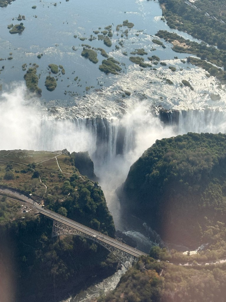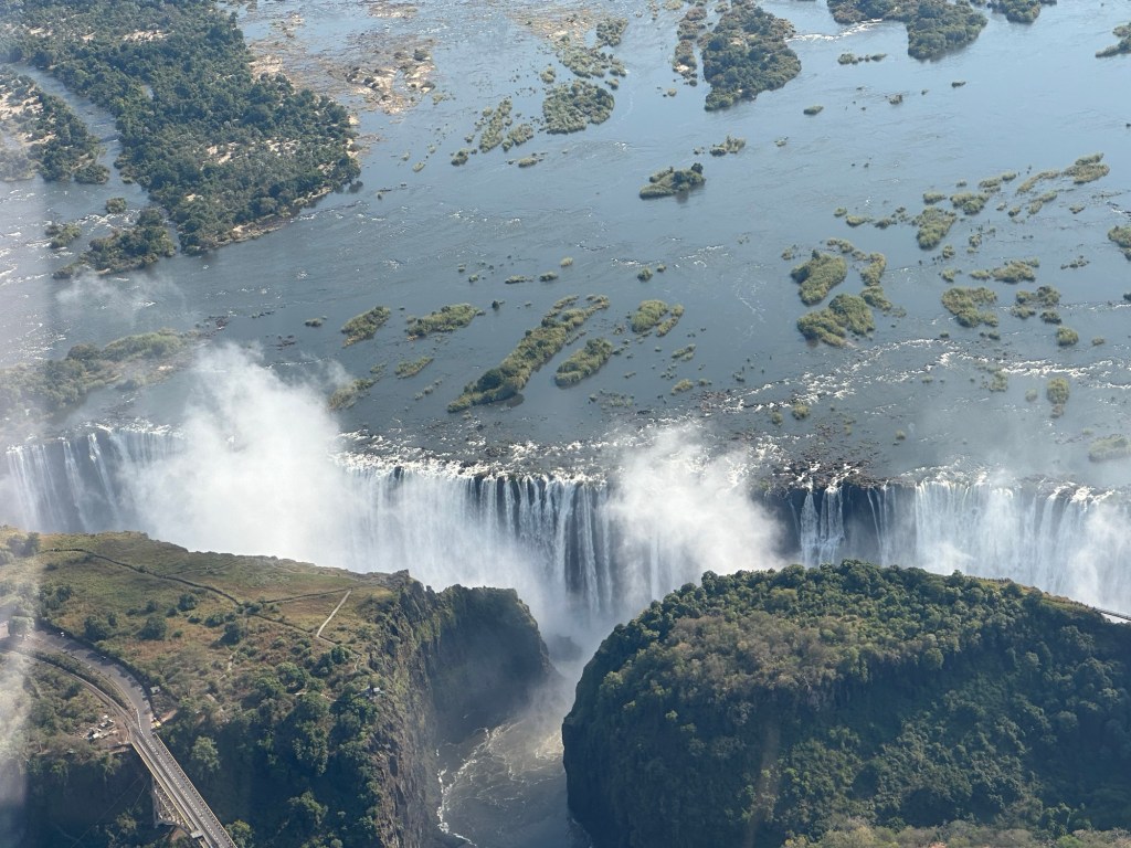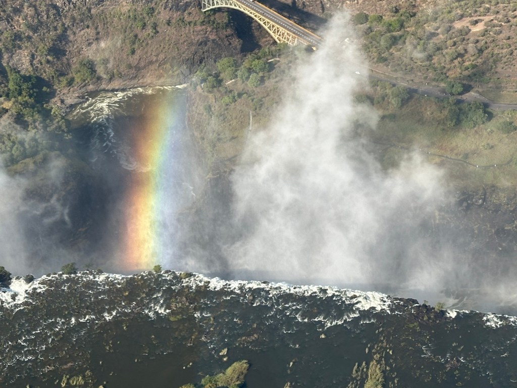 Nothing like a waterfall to get your attention. Especially if it is Victoria Falls. So some of us decided to do a helicopter ride before we did the walking tour. We flew around the gorge that has been created by the water flow of the Zambezi River.