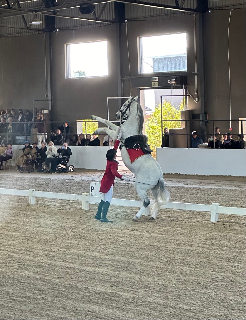 Today we had another WOW event outside the city of Cape Town. The Mistico Equestrian Center hosted those of us on the world cruise. The center breeds and trains Lipizzaner horses. They were originally found in Germany but the survival of these horses was at risk during WW II. Efforts by U.S. troops with those from Austria helped to eventually transport these horses to Africa. Durban became their first African home. They were transferred to the Cape Town area and made it their final home.