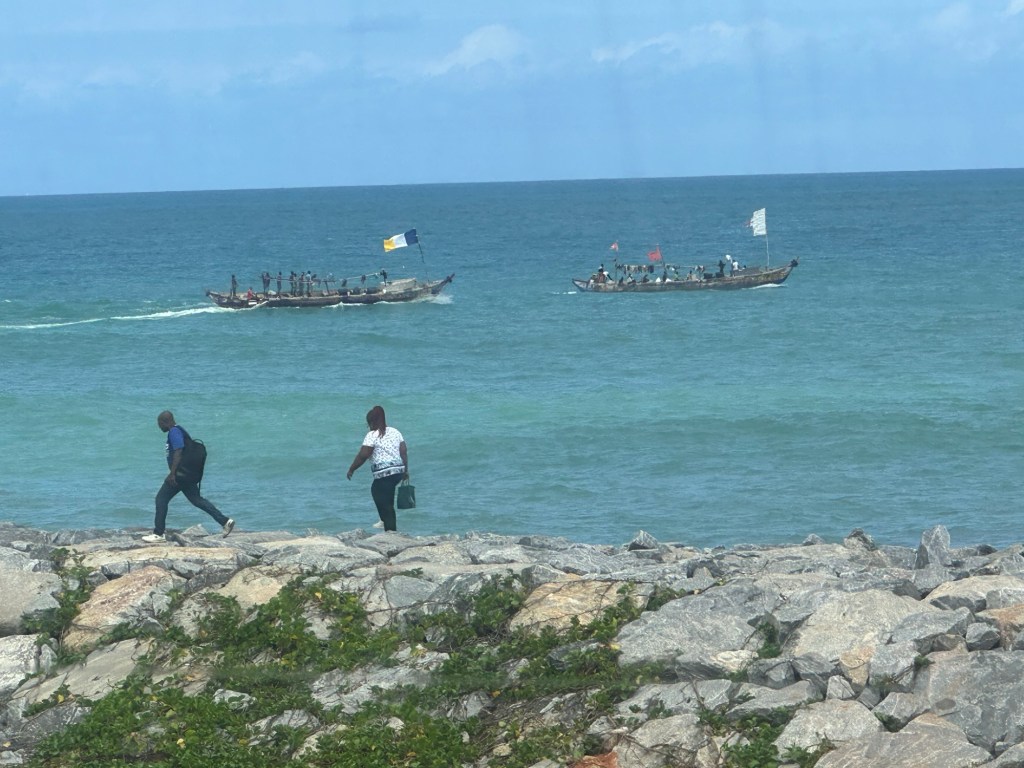 This stop in Ghana resulted in an emotionally challenging day. Ghana was one of the larger slave trading areas in the African Continent. You may remember Barack Obama and his family visiting a slave trading complex in this country. We visited the same place along with a second “castle” located on the Cape Coast.