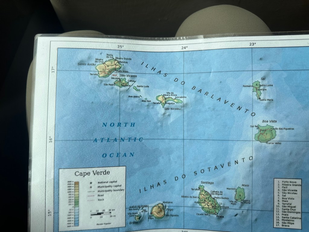 Mindel is a port city in the northern part of the island of Sao Vicente. This is one of ten islands that forms an archipelago that together is known as the northern African country of Cape Verde. This was our last African port. The atmosphere was quite different. It was discovered and settled by the Portuguese. Portuguese remains the official language of the country. The economy is more vibrant with a colorful town with so many buildings painted in bright colors.