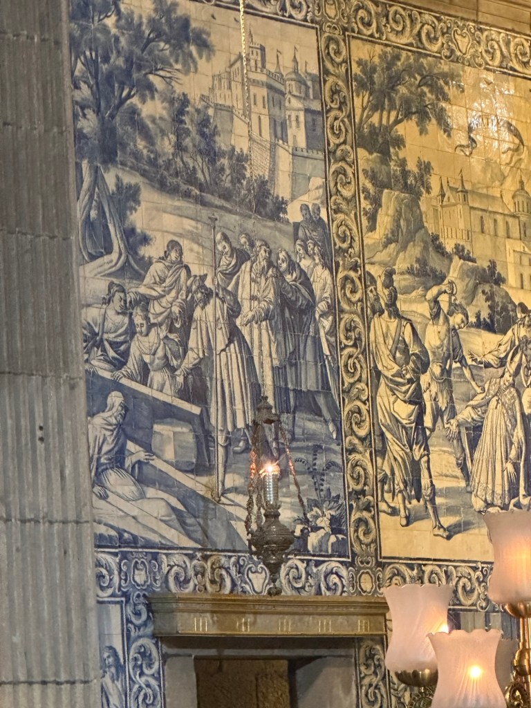 A side chapel was decorated with blue and white Portuguese tile.
